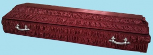 Выполнен из сосны, обитый атлас. В комплект входят: ручки, обивка. Цвет: синий, бордовый. Внутренние размеры: длина 2070мм, ширина в плечах 600мм