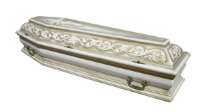 Выполнен из массива кедра, отделка золотая патина, ручная резьба. Покрытие глянцевое. В комплект входят: ручки, обивка. Внутренние размеры: длина 1950мм,